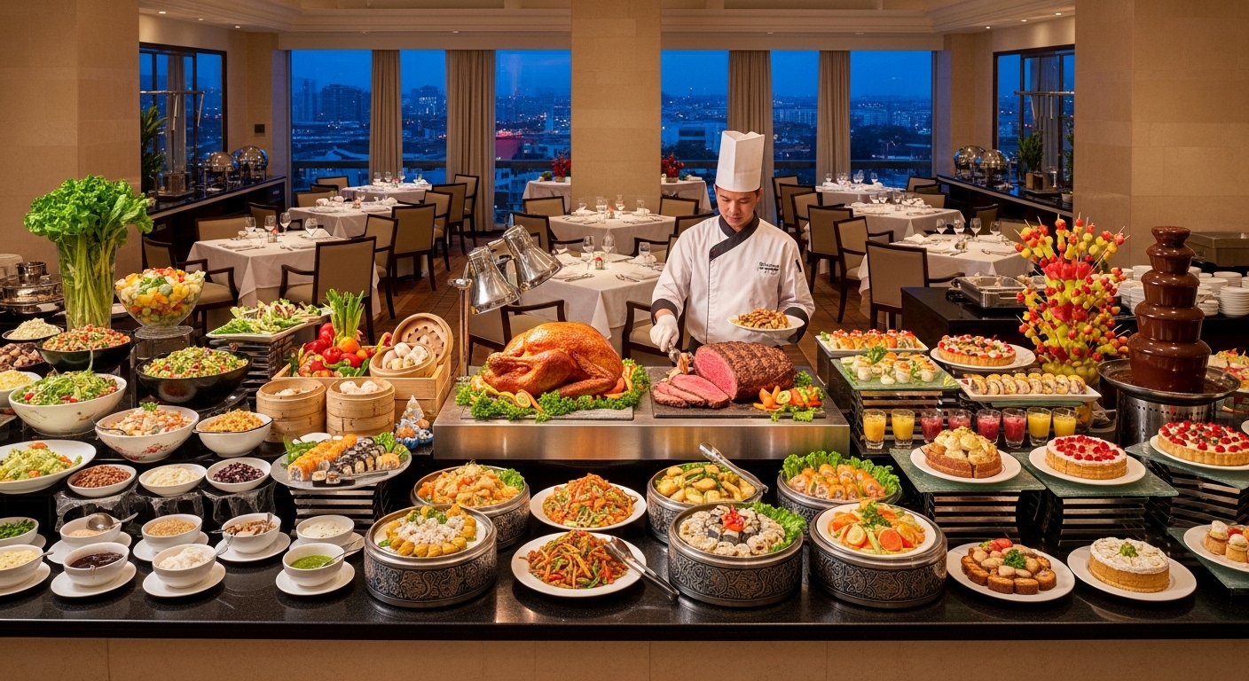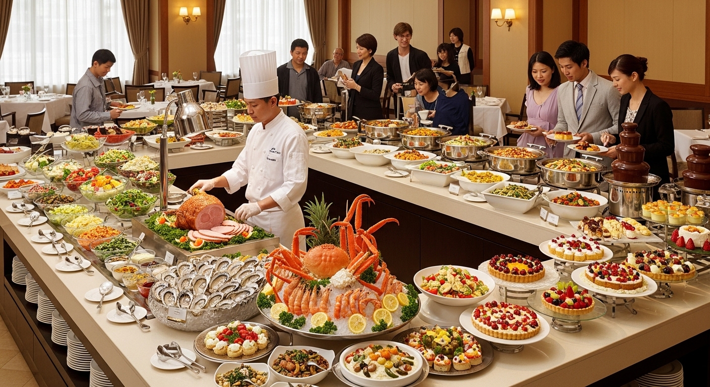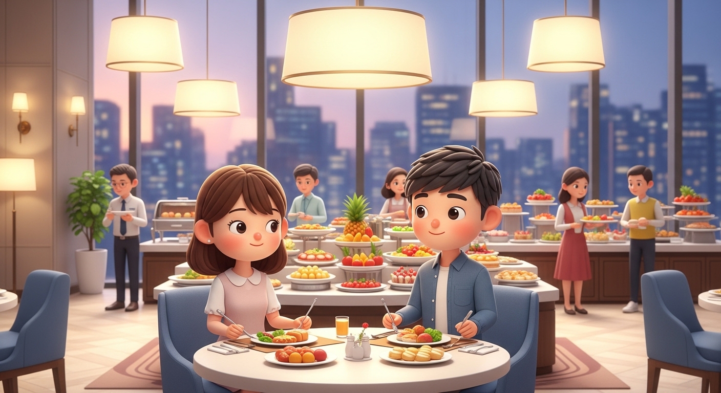 호텔별로 적용 가능한 식사 시간대가 다르며, 주말에는 예약이 조기 마감되므로 평일 점심 시간대 이용이 유리합니다.