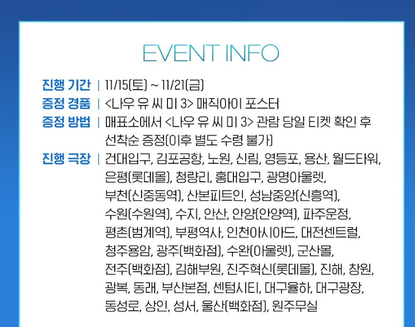 다만, 영화관 지역 및 지점마다 차이가 있을 수 있으며 소진 시 마감되므로