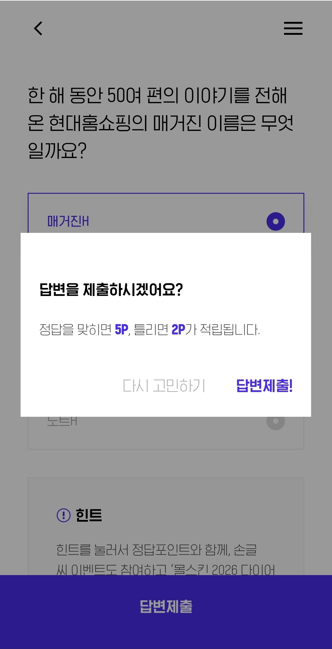 H.Point 오늘의 퀴즈 참여하기