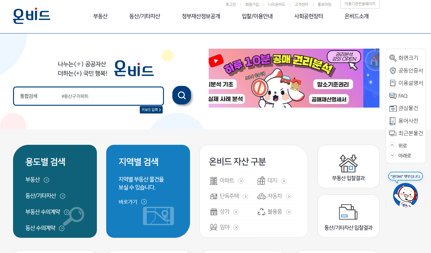 - 온비드 사이트에서 관심 있는 자산 검색